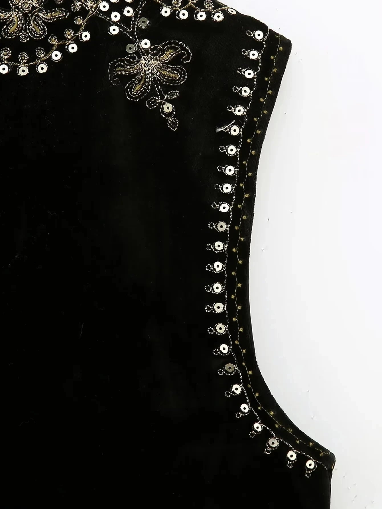 Vintage Autumn Velvet Embroidered Vest Sleeveless Jacket Women V Neck Chic Waistcoats Female Fashion Vests Coat 2023